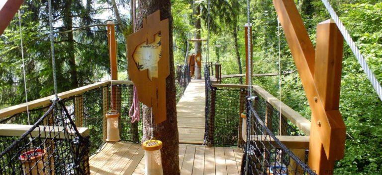 Pour le centre d’accrobranche « d’un arbre à l’autre » à la Féclaz, nous avons conçu et réalisé « Le trésor du Chéran »…