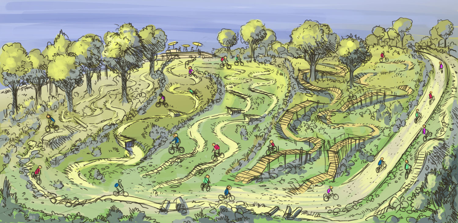 En collaboration avec la société Alterespaces j’ai dessiné ces croquis qui ont pour objectif de visualiser différentes options d’implantation des attractions d’un parc de loisirs sportifs. Le thème principal du parc est le BMX qui est complété par d’autres aires adaptées à tous les âges.